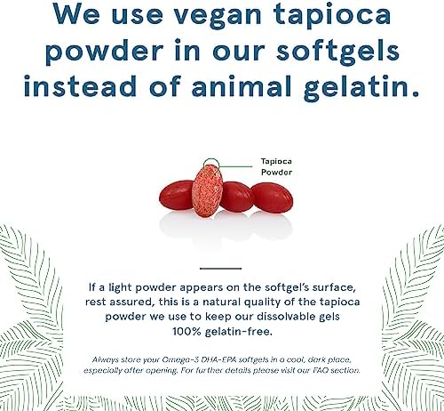 TAILORED FOR VEGANS & VEGETARIANS – This EPA DHA supplement is suitable for vegans and vegetarians. It is Free of yeast, wheat, gluten, salt, hexane, dairy, egg, fish, animal products, byproducts or derivatives.